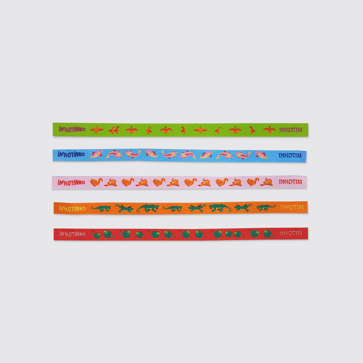 Inspirada nos bichinhos encontrados no Inhotim: Quati, Tiú, Caxinguelê, Carpa e Ganso.